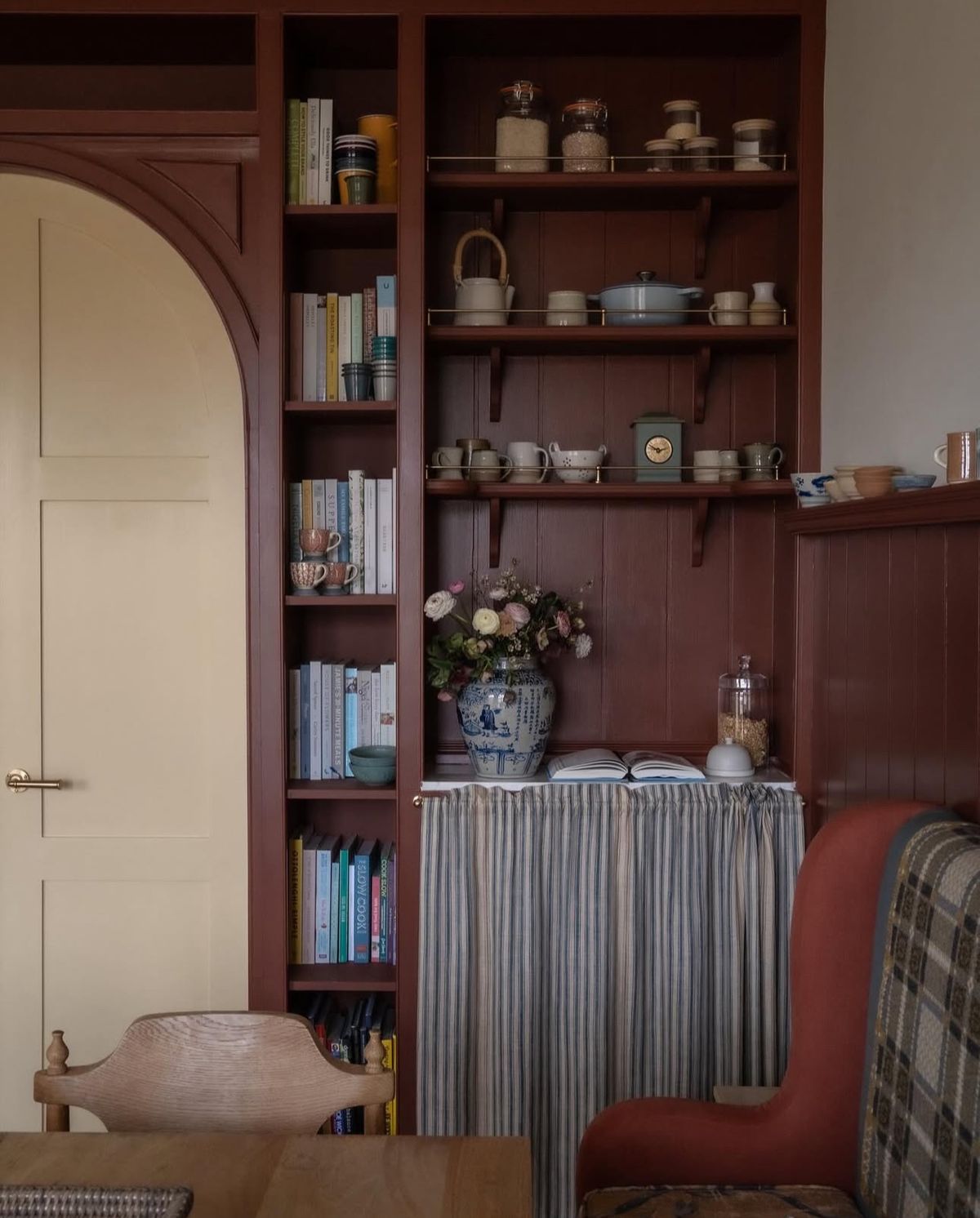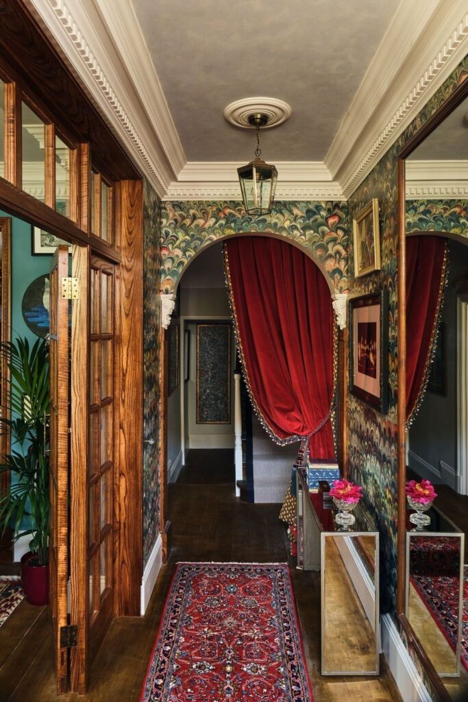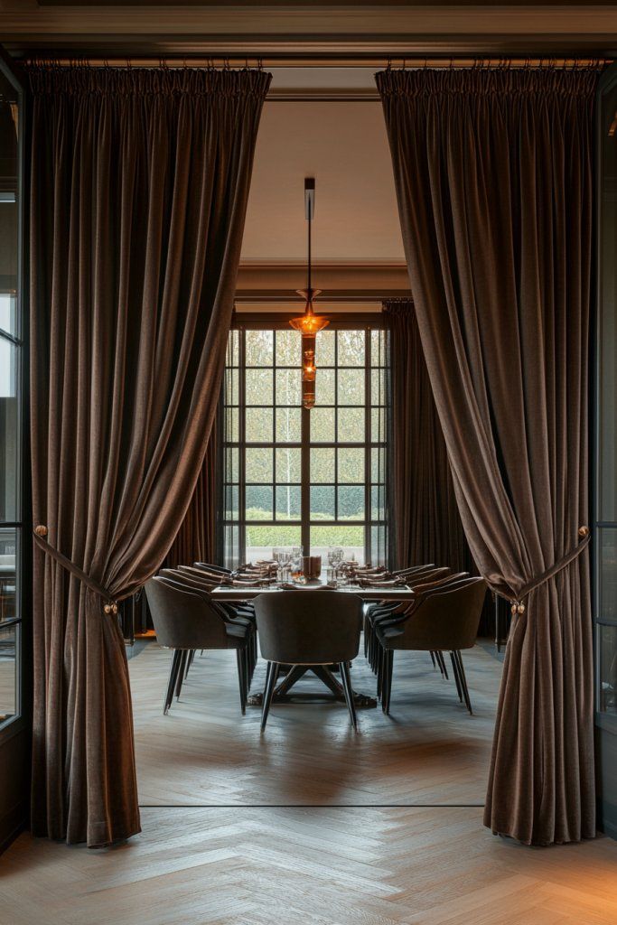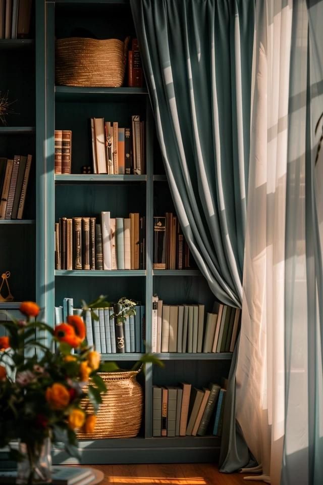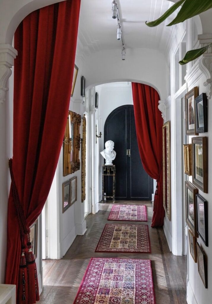 Speaking of LAYERS…drapery is showing up EVERYWHERE…from hallways, to bookcases, room-dividers to sinks, book nooks…anywhere and everywhere you wanna add some drama…one way to do it is…