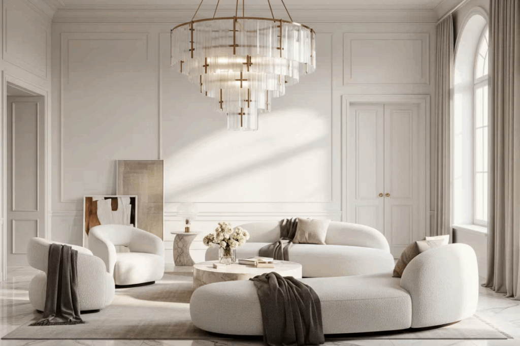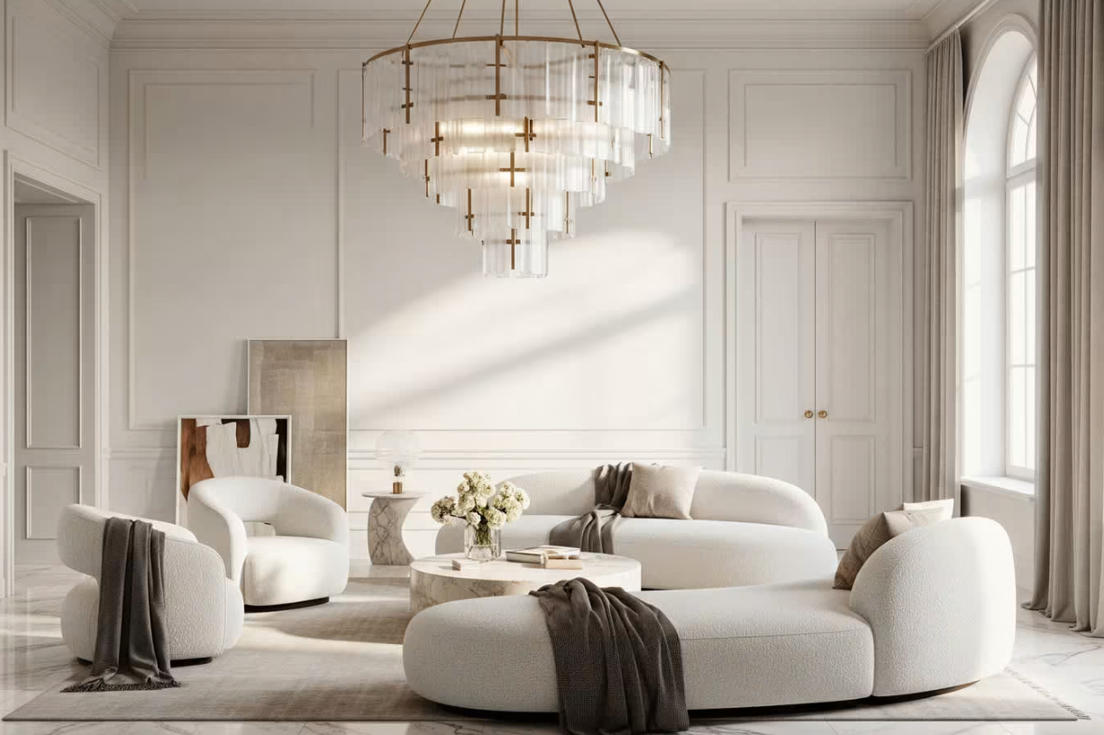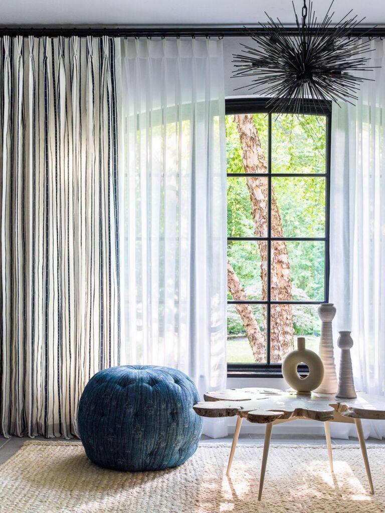Layers! Layers! LAYERS! Layering is one of the design elements for ’26 that is easy for everyone! Combining sheer shading for diffused light during the day with room-darkening draperies for privacy and comfort at night.