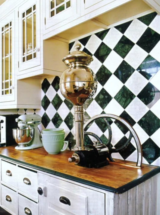 The next trend for ’26 is DEF an offshoot of Art Deco’s popularity, as checkerboard floors, were a key component of that style. The new spin? You don’t have to stick with the traditional black-and-white traditional combo.