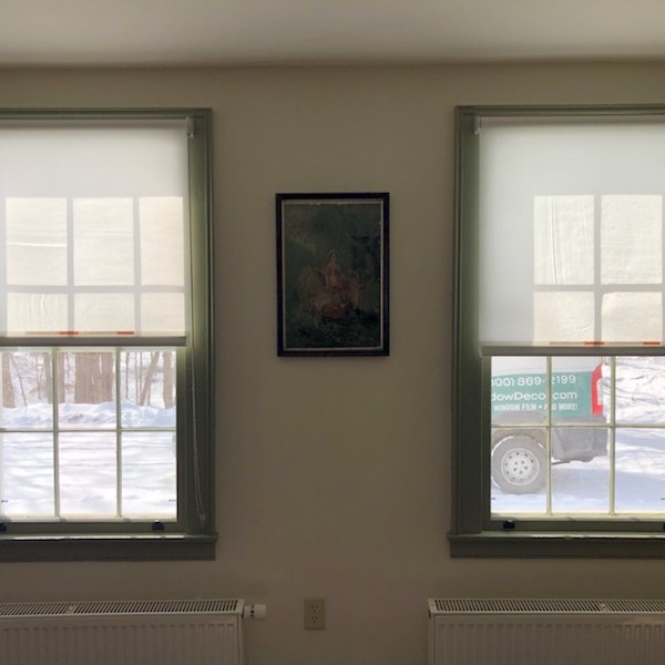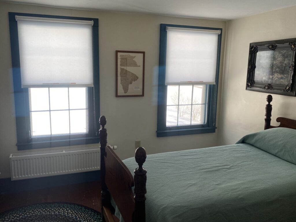 This level of care motivated our recent installation of new made In Vermont EcoSmart Roller Shades from Gordon’s Window Decor, at Dutton Farmhouse, which do not damage the window frames. These replaced existing shades and responded to guest feedback to extend to all the home’s windows. Best of all? When you roll those shades up, you barely know they’re there, letting the character of the historic architecture shine through. And you get a to-die-for view of Scott Farm Orchard and the rolling hills beyond!“ -courtesy of Landmark Trust USA